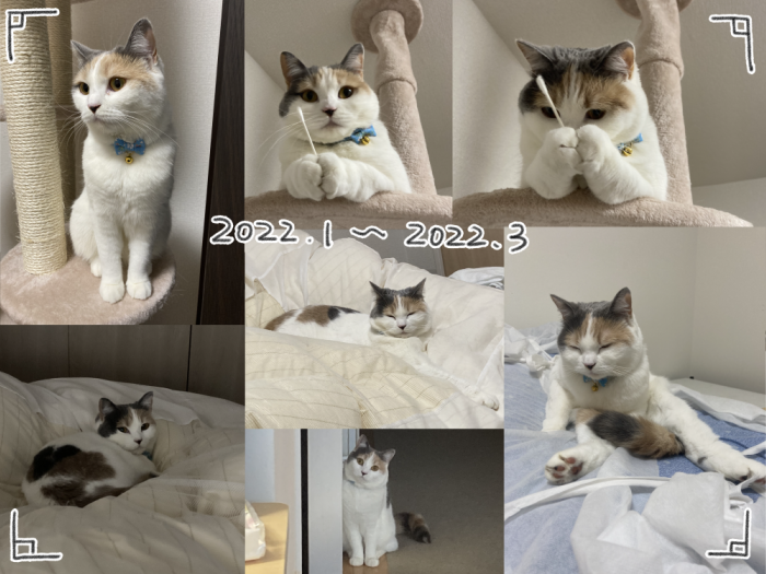 ゆりあ ゆりあ(管理人) 2022年3月20日(日) 00:00 No.763 日常,猫 No.763 2022年1月~2022年3月までのねこ 綿棒で遊ぶのと飼い主を羽毛布団の上から踏みつけるのが好き